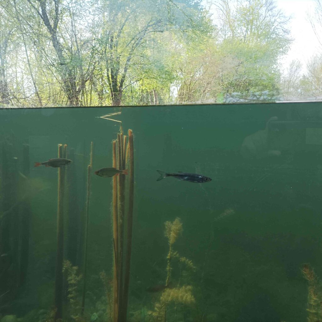Kleine und größere heimische Fische können auf der Unterwasserstation der Schloßinsel Orth im Nationalpark Donauauen beobachtet werden.