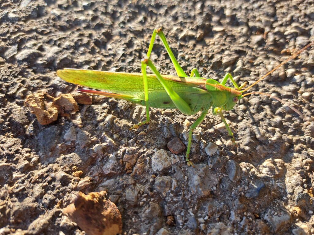 Insekten Grünes Heupferd Leuchtgrüne Riesenheuschrecke auf dem Weg am Waldrand von Matzen Richtung Prottes, nahe dem Schneiderkreuz.