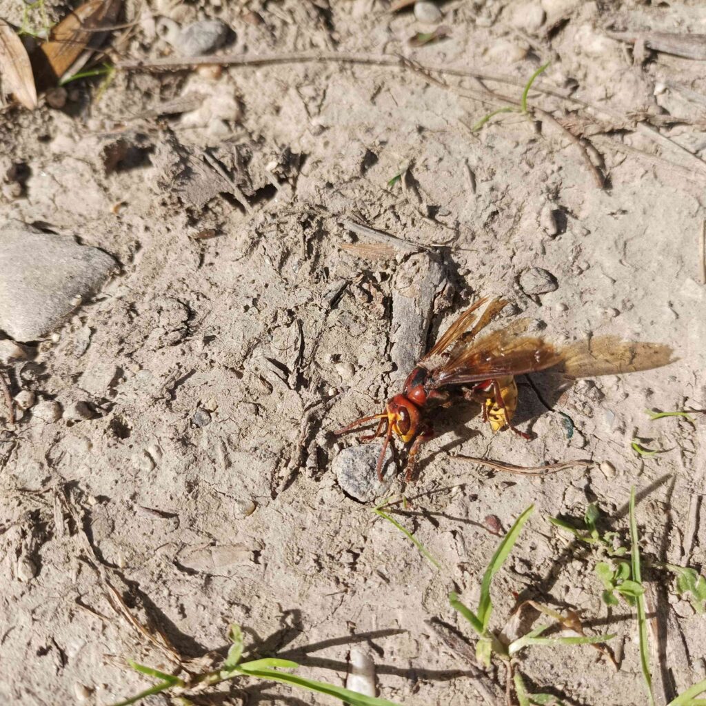 Hornissenkönigin in Bockfließ vor dem Winter. Die jungen suchen sich einen Platz zum überwintern und gründen nach dem Frost eine neue Kolonie. Die alten sterben.