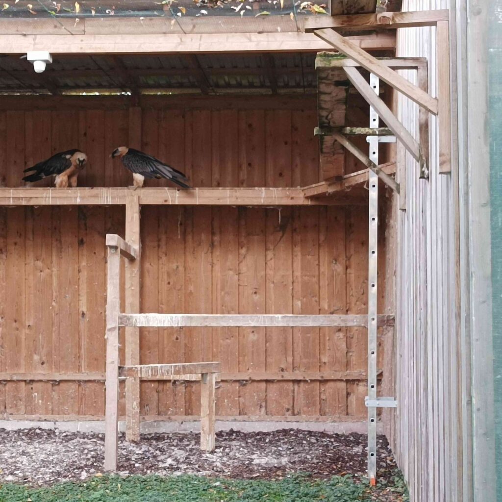 Zwei Bartgeier in der Greifvogelstation in Haringsee im Marchfeld.